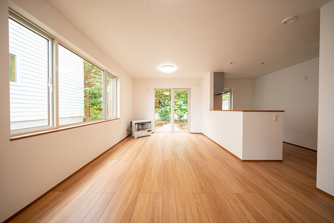 木々のグリーンが美しく見えるように配置した窓で安らぎの空間に。