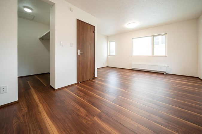 存在感のあるダーク系のフローリングが際立つモダンな雰囲気。