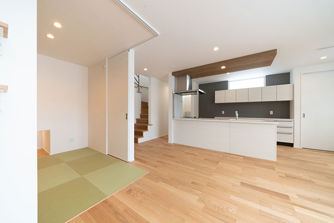 引戸をL型に開口できる一体感のあるプラン。