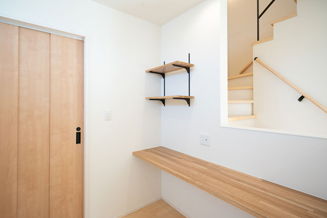 階段横のカウンターは子供たちのスタディスペースとしても使え、
