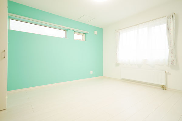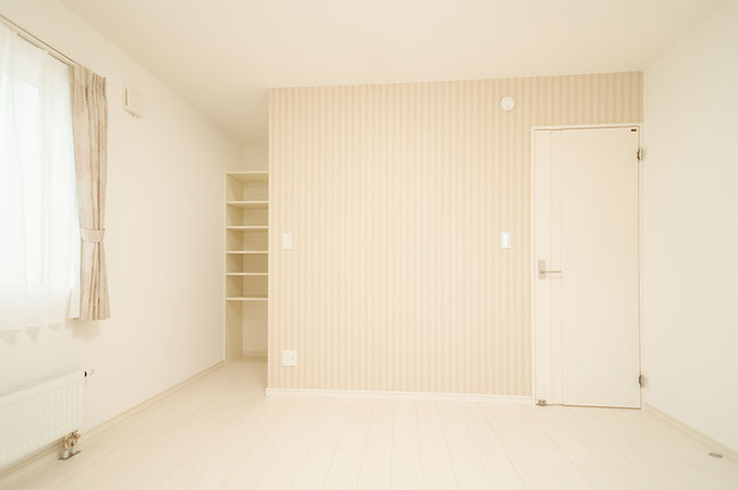 やさしい雰囲気の主寝室。奥にはウォークインクローゼット