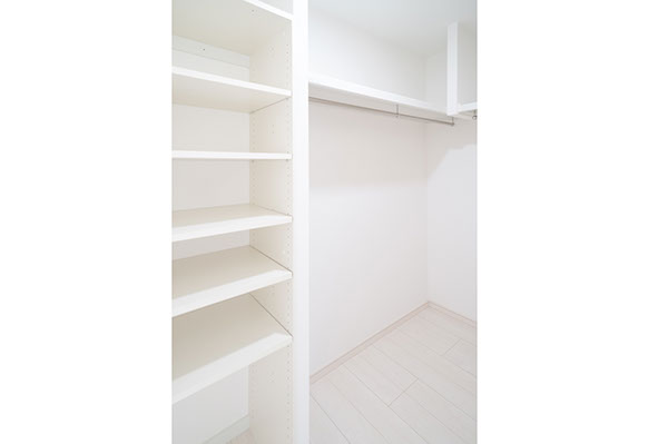 ウォークインの内部はシステム収納のついた使い勝手の良い作り