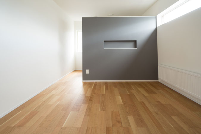 主寝室。壁の向こうにはウォークインクローゼット