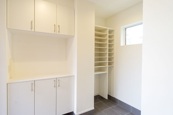 ダイニングには食品庫と家事カウンター