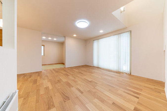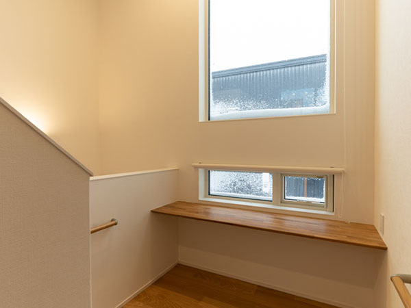 吹き抜けを通してLDKと踊り場のカウンタースペースへと