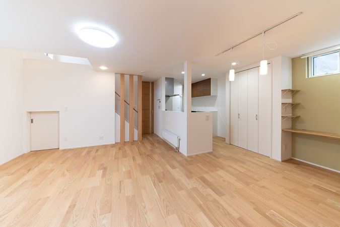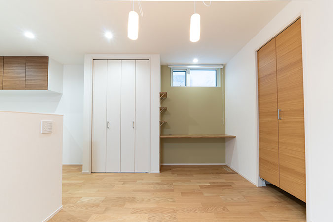 階段の踊り場の下にはキッズスペースとしても使えそうな