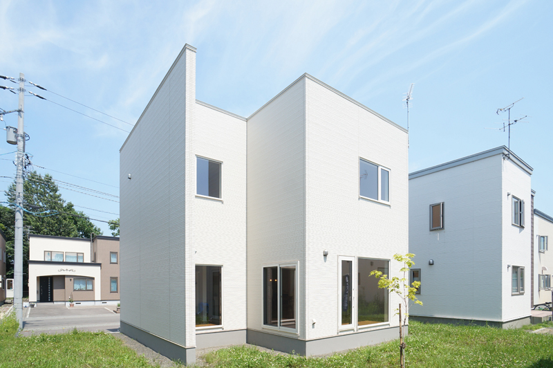 スクエア型の窓がポイントとなるシンプルで洗練された外観。