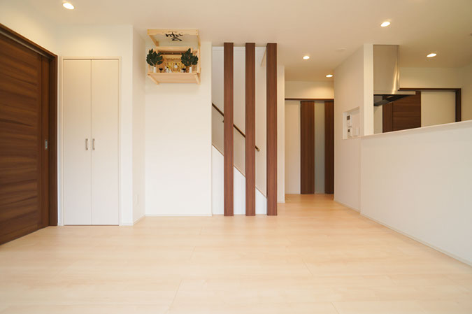 リビング側からもキッチン側からもホールへ出入りできる使い勝手の良いプラン。