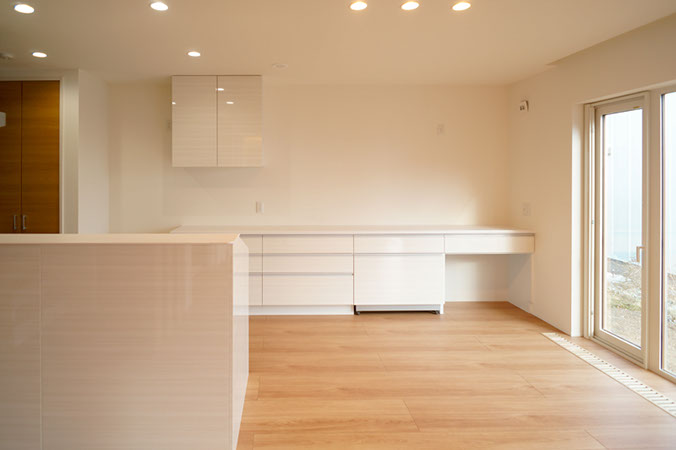 キッチンはスッキリしたデザインと収納力のあるマルチ対面プラン