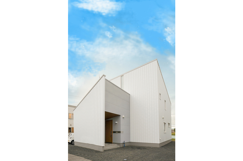カタナガレ屋根が印象的なホワイトのスタイリッシュな外観