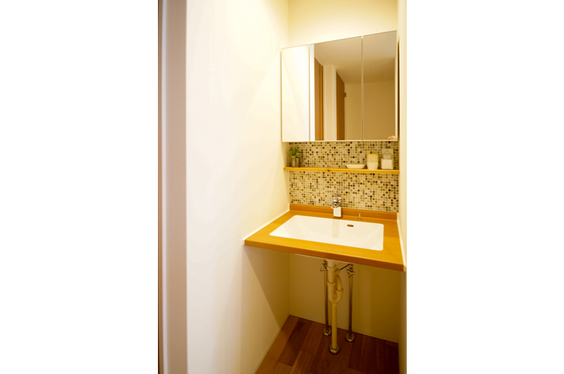 モザイクタイルが印象的な造作洗面台