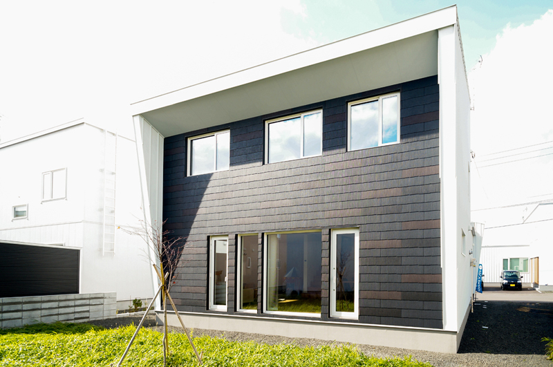 建物背面はダークカラーを用いて正面とは異なる印象のデザイン。