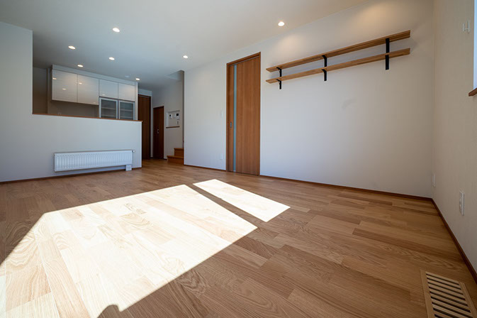 シンプルで日当たりの良いリビング。