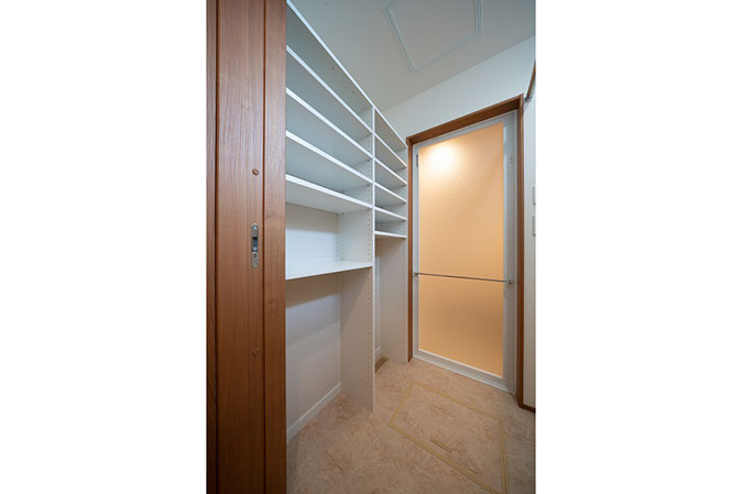お風呂の前のクローゼットは収納たっぷり。