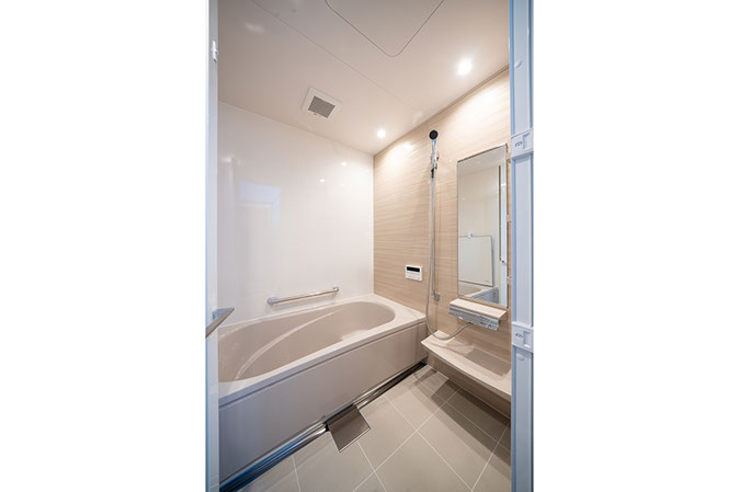 床は汚れが入り込まない磁器タイル製で