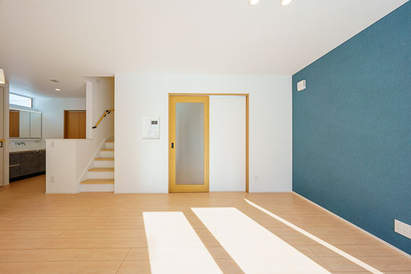 アクセントクロスをチョイスしたリビングダイニング。