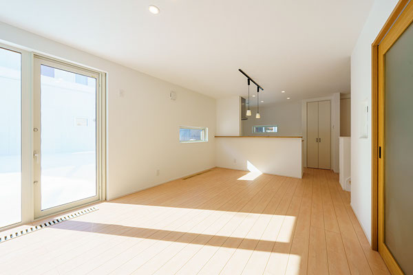 リビングの南側には、L字型に窓が配置されていて、