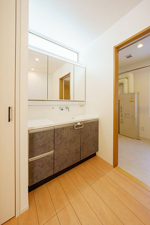 洗面化粧台は、ワイドな1200㎜サイズで収納量もたっぷり。