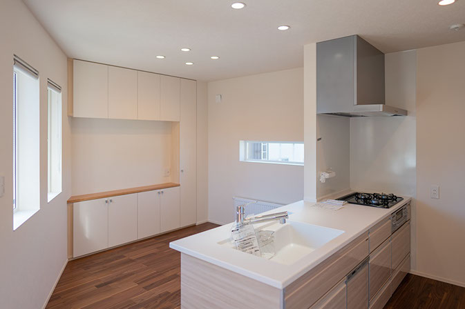 家族みんなのタオル類等がスッキリ納まる可動棚が2箇所。