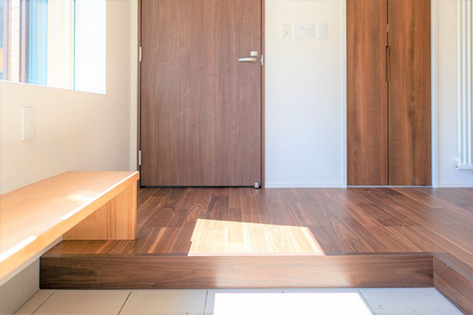ゆっくりと靴を履けるようにカウンターチェアを設置。