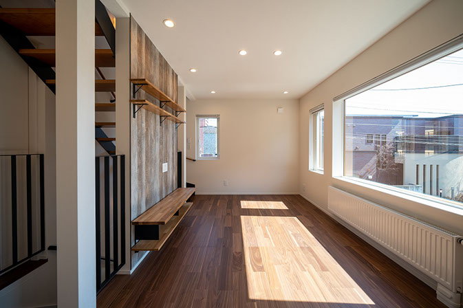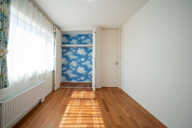 アクセントクロスが際立つカジュアルな雰囲気が素敵なリビング。