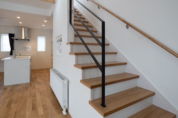 登り口部分を鉄骨手すりにしてデザイン性をプラス。