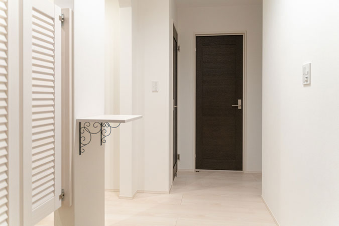 清潔感のある玄関。左側のシューズクロークへは