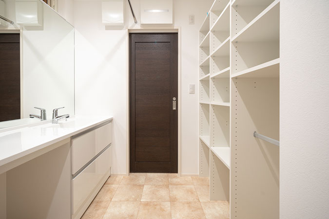 奥の引き戸はたっぷり使えるパントリー