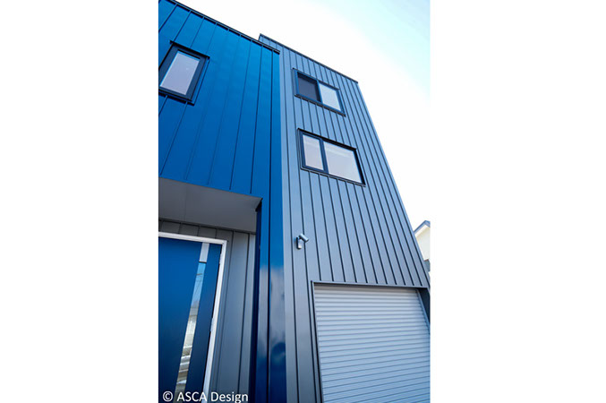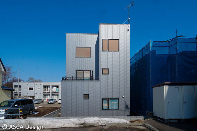 ガルバのシャープさがより際立つ3階建てのデザイン。