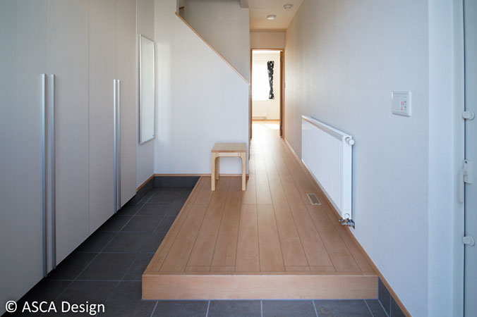 家族で外出する時も脱ぎ履きしやすい玄関のつくり。収納も充実。