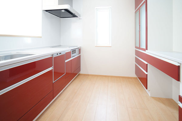 鮮やかなカラーのキッチン。
