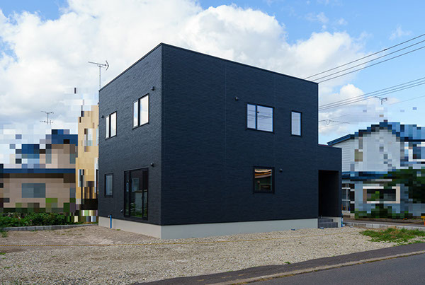 外壁やサッシは、ブラック系でまとめシックで高級感のある仕上がりに