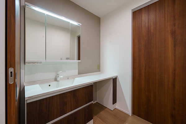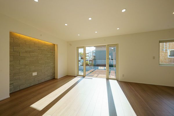 壁面の一部を造作し間接照明とエコカラットプラスを施工。