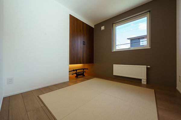 ゲストルームは、畳や吊押入をデザインした和洋折衷スタイル