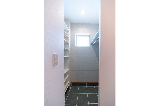 洗面台の横のカウンター下にはバスマットを掛けられるハンガーを設置