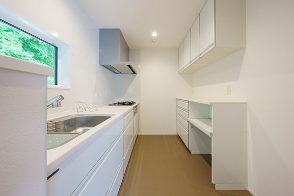 清潔感のあるホワイトカラーでまとめられたキッチンは、