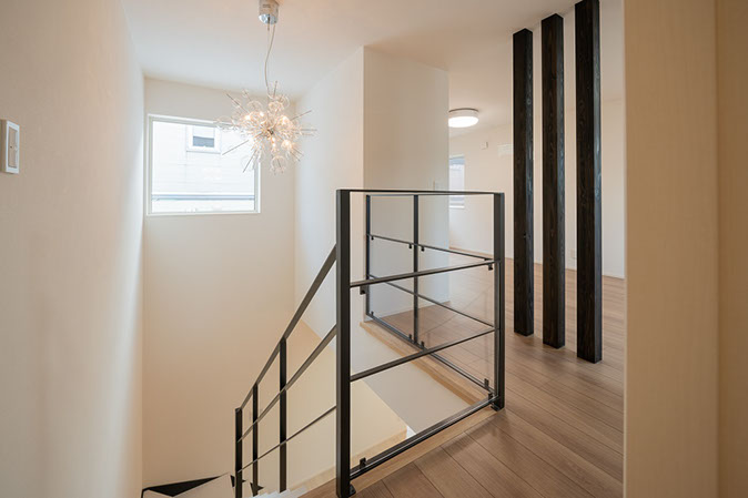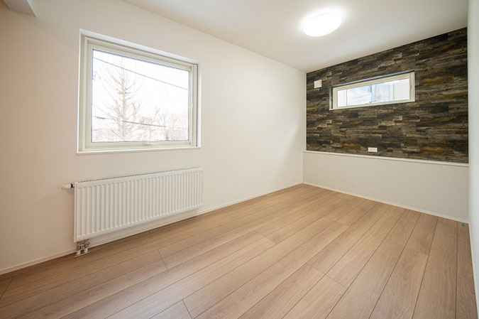 凝った柄のクロスも上下に貼り分ける事で上品な印象に