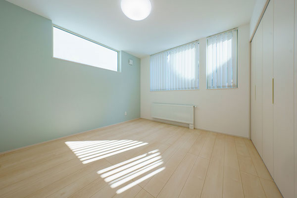 明るいフロアカラーとマッチしていて爽やかな印象の主寝室